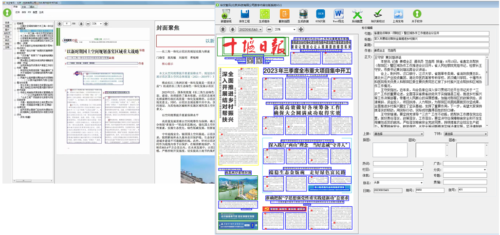 4.信息加工功能:系统提供了对版面文章的内容加工修改的功能,包括对文章内容的预览和修改、选中标引块转换为图片等功能。